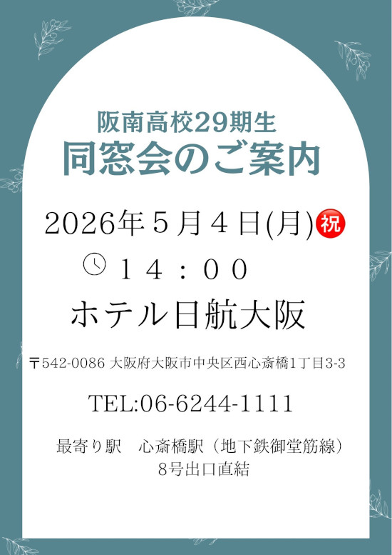 29期の幹事さんから期生会開催のお知らせが届きました。