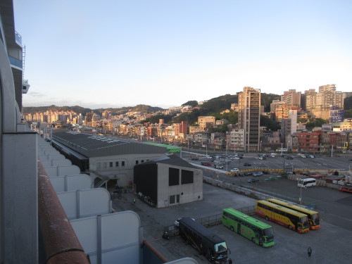 大阪から台湾まで船で行くと2-3日かかります。11月の終わりだというのに船の甲板にいてもそれほど寒いと感じなくて過ごしやすい気温が続いていました。船の中をあちらこちら歩き回ったり、15階の甲板にある長椅子で少し日光浴をしたり、また同じ階にある卓球台で皆さんと卓球を楽しんで居りました。そうこうしているうちに朝早く起きてみるとちょうど船が基隆(キールン)港に入る所でした。どうも湾内でぐるっと向きを変えて岸壁に接岸しているところでした。初めて見る基隆の港の印象は大阪の近代的な天保山埠頭に比べると2-30年昔にタイムスリップしたみたいな感じでした。船から見える基隆の街の印象も大阪に比べるとどこか少し古びた地方都市の様に見受けられました。