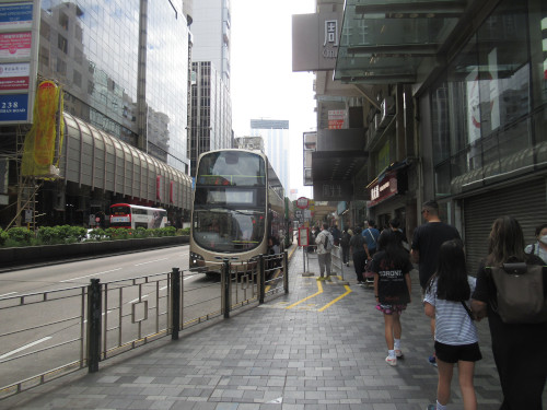香港の市内の道路事情に関しては、車が整然と道路を走り、運転手たちがホーンを鳴らすこともなく、日本の様に皆さん確かな運転をされていたように思いました。また大変多くの色とりどりの2階建てバスが走っていました。台湾、サイゴンのようなモペットはあまり見かけませんでした。道路事情に関しては、日本とよく似た状況でした。それと道路上での交通標識、通りの名前とかは中国語と英語の両表示になっていました。勿論車は日本と同じ左側通行です。街の中を歩いていても、不愉快になったことはありませんでしたし、歩いて色々なお店を見て回りましたが、ほんとに楽しかったですね。香港には一日しかいませんでしたが、もし将来時間などがあれば、又行ってみたい街ですね。非常に楽しいところだという印象を受けました。今まで自分が持っていたイメージとは全然違うところでした。