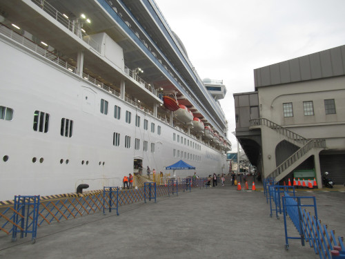 日本統治下の基隆港はもともとは大きな船が入れる港ではなくて日本人の土木技師達の努力によって大きな船が着けられるように港湾を整備されたという事がインターネット情報に書かれておりました。多くの日本人の方たちの努力の結果今の様に10万トンクラスの船も岸壁に横付できるようになったみたいです。岸壁には観光バスが数台すでに停車していてクルーズ船から乗客が下りてくるのを待っているところでした。義理の息子がすでに7人乗りの車を手配してくれていたようで船から降りるとすでに車が止まって我々を待っていてくれました。初めて台湾に足を踏み入れました。