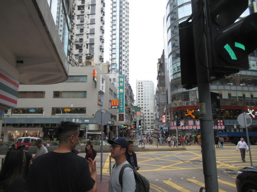 最初に行ったところは香港の地元の皆さんが良く行く朝食を出しているところでした。そこでみんなでトースト、マカロニ、ドリンクなどを頂きました。店の中は大変混雑していて、ものすごく活気があったような感じでした。値段も安いからこんなに朝から人が多いのかなと思いました。そこから少し歩いて色々なお店が立ち並んでいる通りまで歩いたんですが、私の最初の香港の印象は、すごくきれいで、車も人もちゃんとルールに従って動いているなという印象を受けました。それと市内なんですがやたらと高層ビルが多かったですね。新しいのやら昔からある古いのやら、とにかく大阪難波とか梅田の近くではこういう高層ビルは建ってないと思いました。香港にはほんとに高層ビルが多いんですが、やっぱり地震がないからなんでしょうね。それと驚いたのは、道路にごみが一つも落ちていなかったことですね。とにかくどこに行っても道がとにかく綺麗かったですね。私が持っていた街が汚いという先入観は完全に間違っておりました。